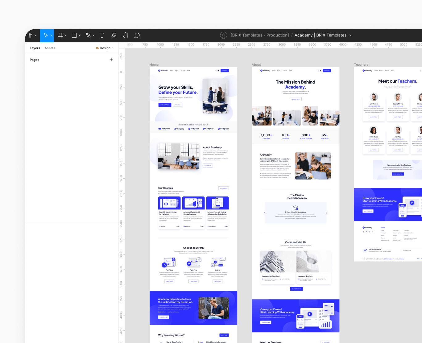 Send us an email to academy@brixtemplates.com with your purchase receipt, and we will send you the editable Figma file for the Academy template.