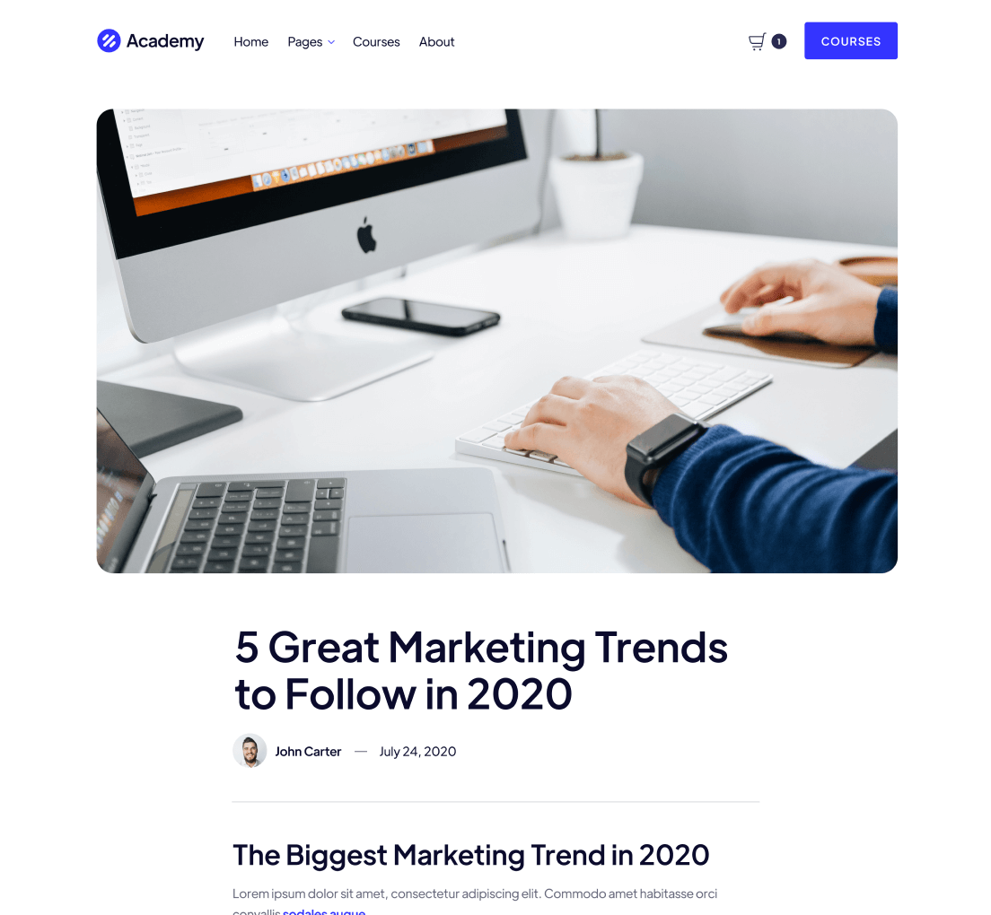 Take a look at the main pages included in the Academy Template.